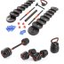 Представленный комплект состоит из 16 дисков, грифов и замков, которые легко трансформируются в штангу, гири и даже гантели. Отличается следующими особенностями: