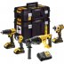 DeWalt DCK440L3T — это универсальный комплект, включающий дрель-шуруповёрт DCD778, ударный шуруповёрт DCF787, перфоратор DCH033 и фонарь DCL040. Дрель-шуруповёрт обеспечивает эффективное сверление в дереве, металле и пластике, а также завинчивание крепежа с возможностью регулировки крутящего момента. Ударный шуруповёрт подходит для работы с длинными саморезами и болтами, обеспечивая высокую скорость и мощность при компактных размерах. Перфоратор справляется с бурением и долблением в бетоне, кирпиче и камне, а фонарь обеспечивает яркое и равномерное освещение рабочей зоны. Все инструменты работают от трёх аккумуляторов ёмкостью 3 А·ч, что позволяет использовать их длительное время без подзарядки.