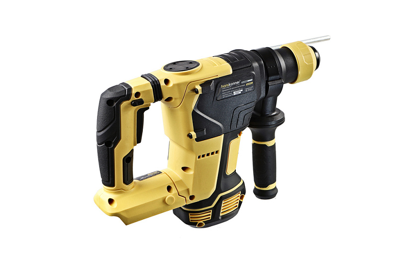 Hanskonner HRH1827BL — это мощный инструмент с энергией удара 4 Дж и частотой до 5200 уд/мин, который способен сверлить бетон, металл и дерево диаметром до 26 мм. Скорость вращения до 1200 об/мин в сочетании с тремя режимами работы позволяет адаптировать инструмент под разные материалы. Питание от Li-Ion аккумулятора на 18 В обеспечивает свободу перемещения без привязки к сети, а вес 2,95 кг делает модель удобной для длительной работы.