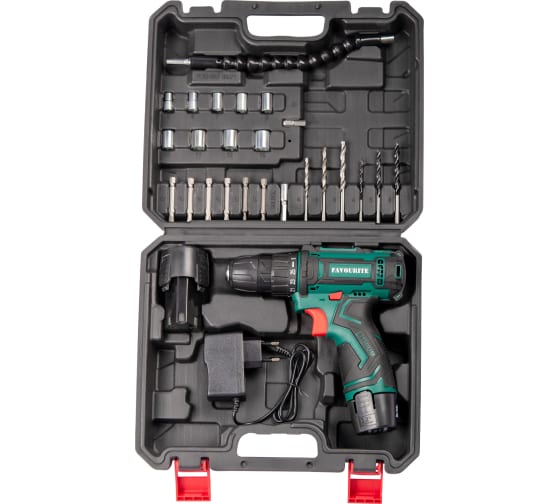 Favourite DC 1202 PROMO SET — аккумуляторная дрель-шуруповёрт на 12 В с функциональным оснащением для решения стандартных бытовых задач. Оснащена аккумулятором 2 Ач, двумя скоростями и крутящим моментом 22 Н·м. Работает с деревом до 20 мм, сталью до 10 мм, снабжена подсветкой и реверсом. Закажите эту модель с доставкой — и получите всё необходимое для точной, повседневной работы.