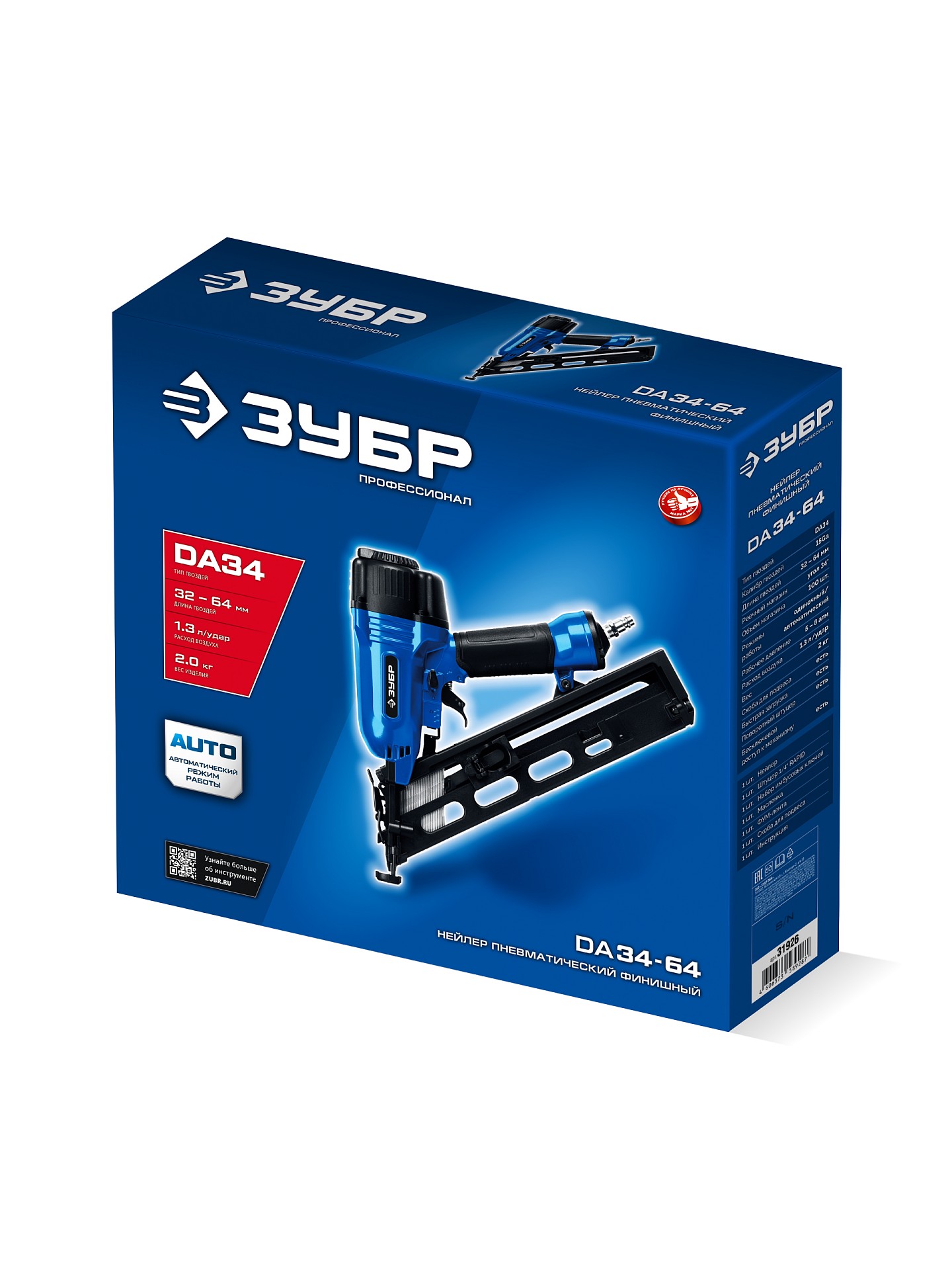 Тип гвоздей: DA34. Расход воздуха на удар, л: 1.3