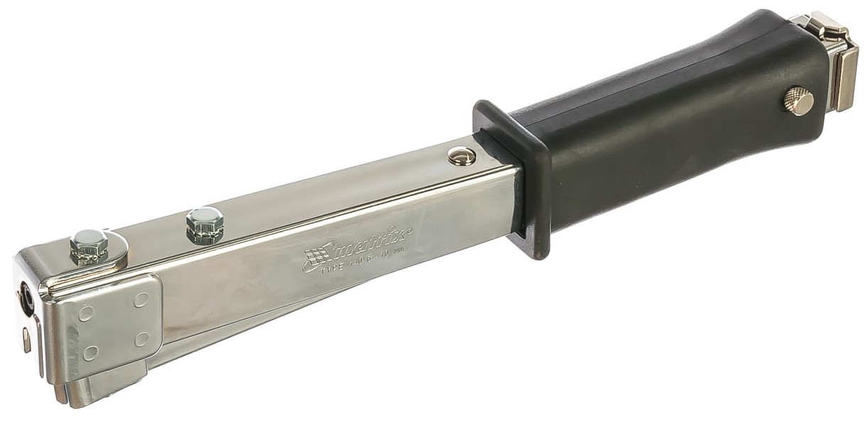 Matrix 40911 - универсальный ручной инструмент для быстрого крепления различного листового материала. Расходной оснасткой при этом могут выступать скобы длиной от 6 до 10 мм. Металлический корпус изделия способствует точности выполняемых операций и долгому сроку службы в целом.