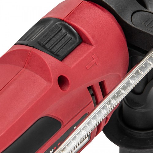 Для удобства пользования дрель электрическая оснащена дополнительной рукояткой. В рукоятке размещается линейка глубиномер с зубьями. У линейки особенная изогнутая форма, что повторяет форму патрона. Это сделано для того чтобы максимально приблизить линейку к сверлу, для сверления особо узких деталей.