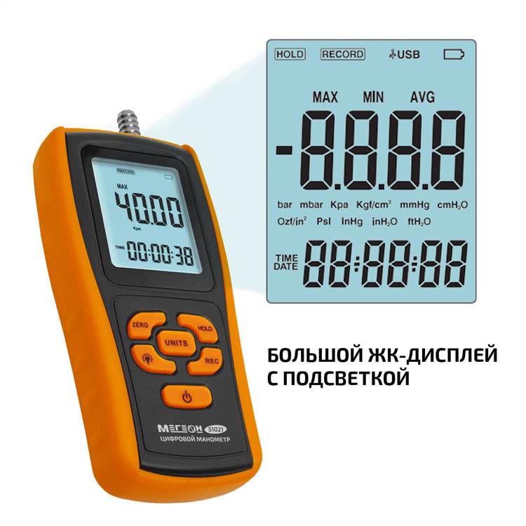 Это профессиональный инструмент для безупречно точных измерений давления. Его современный цифровой дисплей с четкой подсветкой мгновенно показывает данные, исключая ошибки считывания, характерные для стрелочных аналогов. Это ваш надежный помощник в любой ситуации, где важна точность до сотых долей единицы измерения.