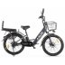 Механические тормоза — дисковый спереди и барабанный сзади — обеспечивают уверенное замедление. Оснащение включает в себя корзину, багажник, зеркало заднего вида и подножку. Комфортное седло и защита цепи делают использование модели особенно удобным. Прямой руль обеспечивает хорошую управляемость, а фонарь — безопасность при недостаточном освещении. Темно-серый цвет добавляет универсальности и строгости, сохраняя при этом стиль.