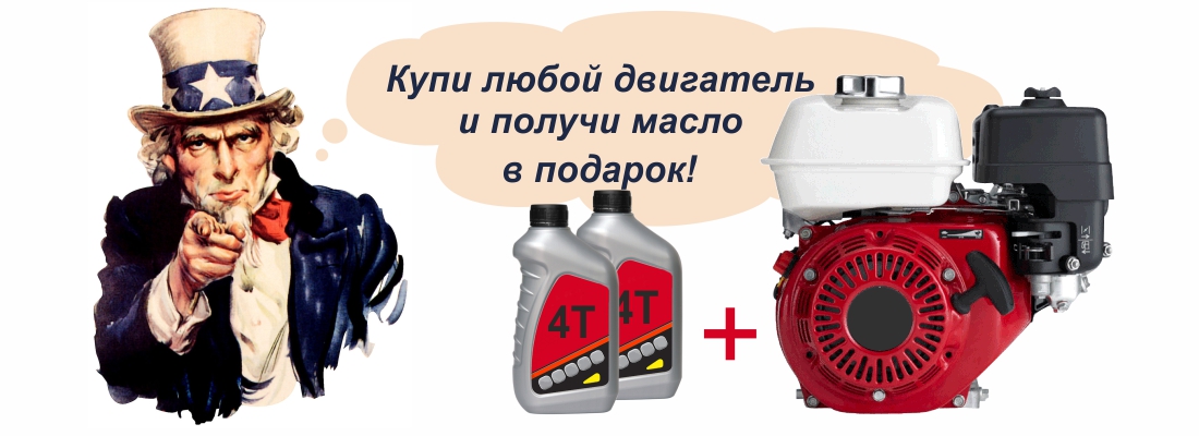 При покупке любого двигателя, из нашего каталога товаров, Вы получаете 4-х тактное масло в подарок.