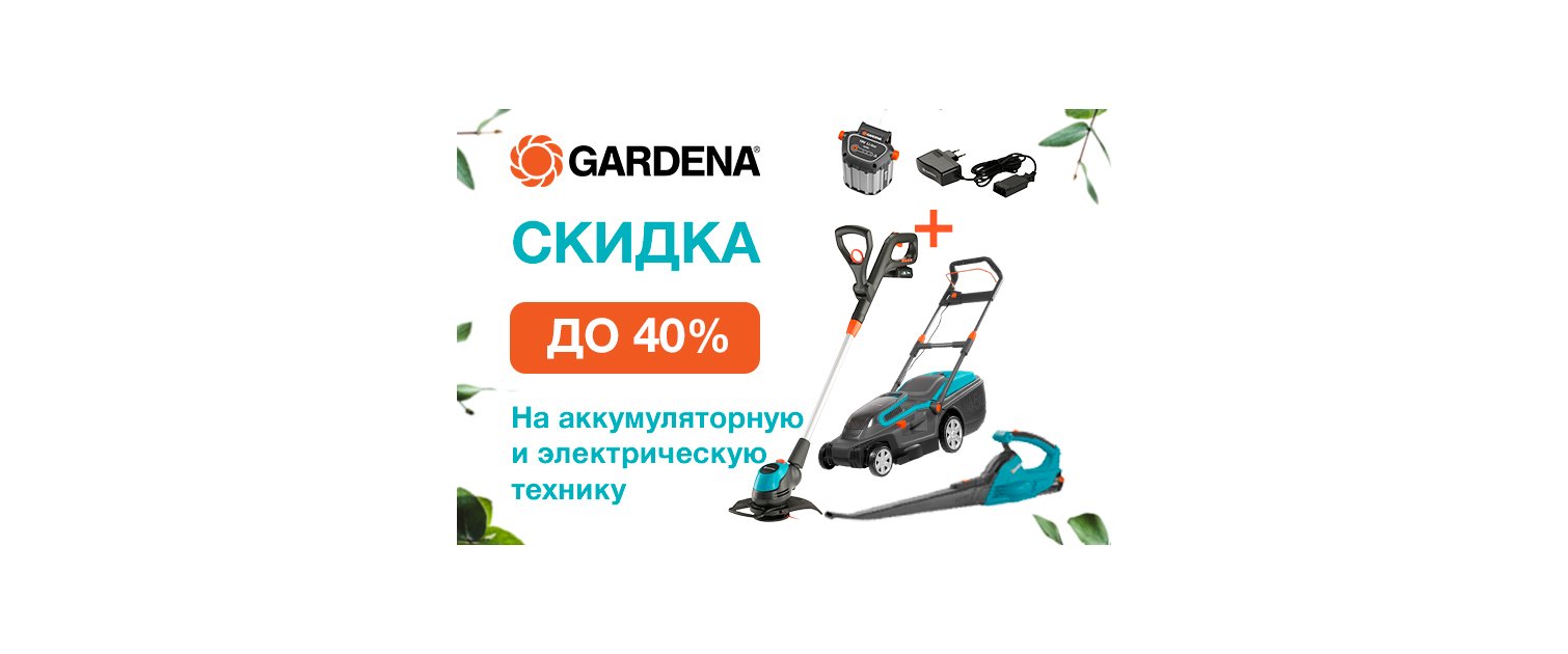 С 06.07.2022 по 31.07.2022 стартует акция Gardena! Скидки на аккумуляторную и электрическую технику до 40%!