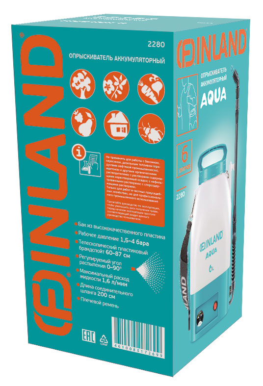 Аккумуляторный опрыскиватель Finland Aqua 2280 станет незаменимым инструментом для садоводов, огородников и тех, кто ценит порядок в доме. Устройство сочетает в себе мощность и мобильность, позволяя легко выполнять полив, подкормку растений или быструю уборку с использованием моющих средств. Благодаря продуманной конструкции и автономной работе вы сможете обрабатывать даже труднодоступные участки без перерывов на подзарядку.