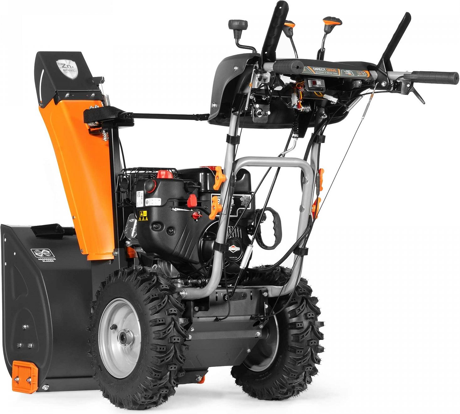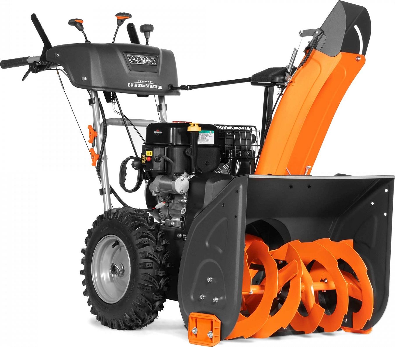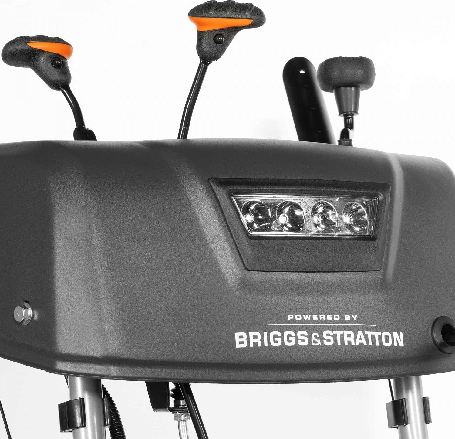 Работа с техникой должна быть удобной. Модель DAST 224 оснащена функцией электрозапуска от сети 220 Вольт, поэтому вам не придется тратить силы на заводку в холодное утро. Для комфортной работы в мороз предусмотрен подогрев рукояток, а яркая LED-фара осветит путь в темное время суток. Панель управления выведена удобно, что позволяет одной рукой регулировать направление и дальность выброса снега, не прерывая процесса уборки.