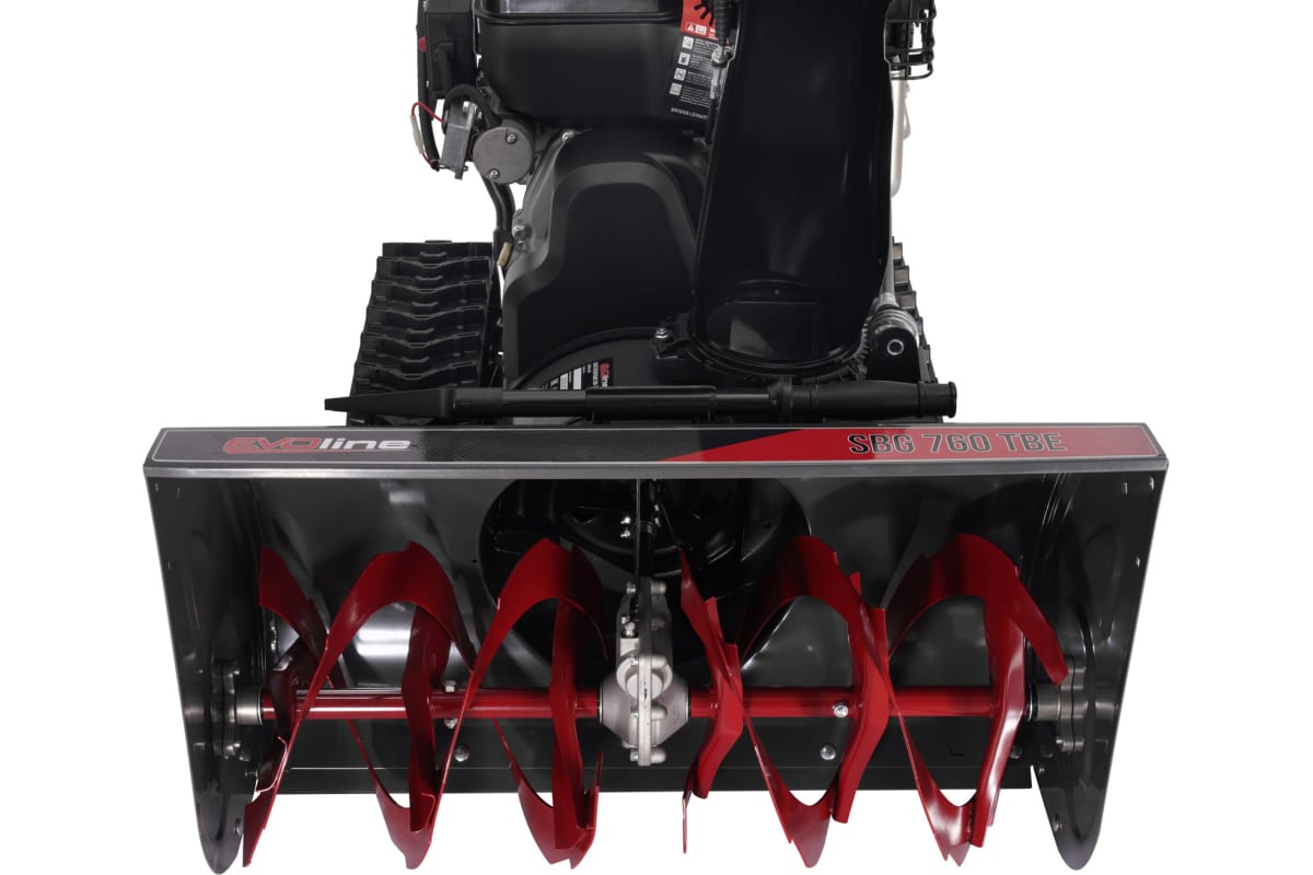 EVOline SBG 760 TBE - самоходная машина на гусеничном ходу, оборудованная двухступенчатой системой шнеков. Ее стальной шнек уверенно справляется со снегом любой плотности. Трансмиссия модели поддерживает 8 скоростей движения, включая 2 задние. Для повышения маневренности предусмотрено отключение блокировки дифференциала.