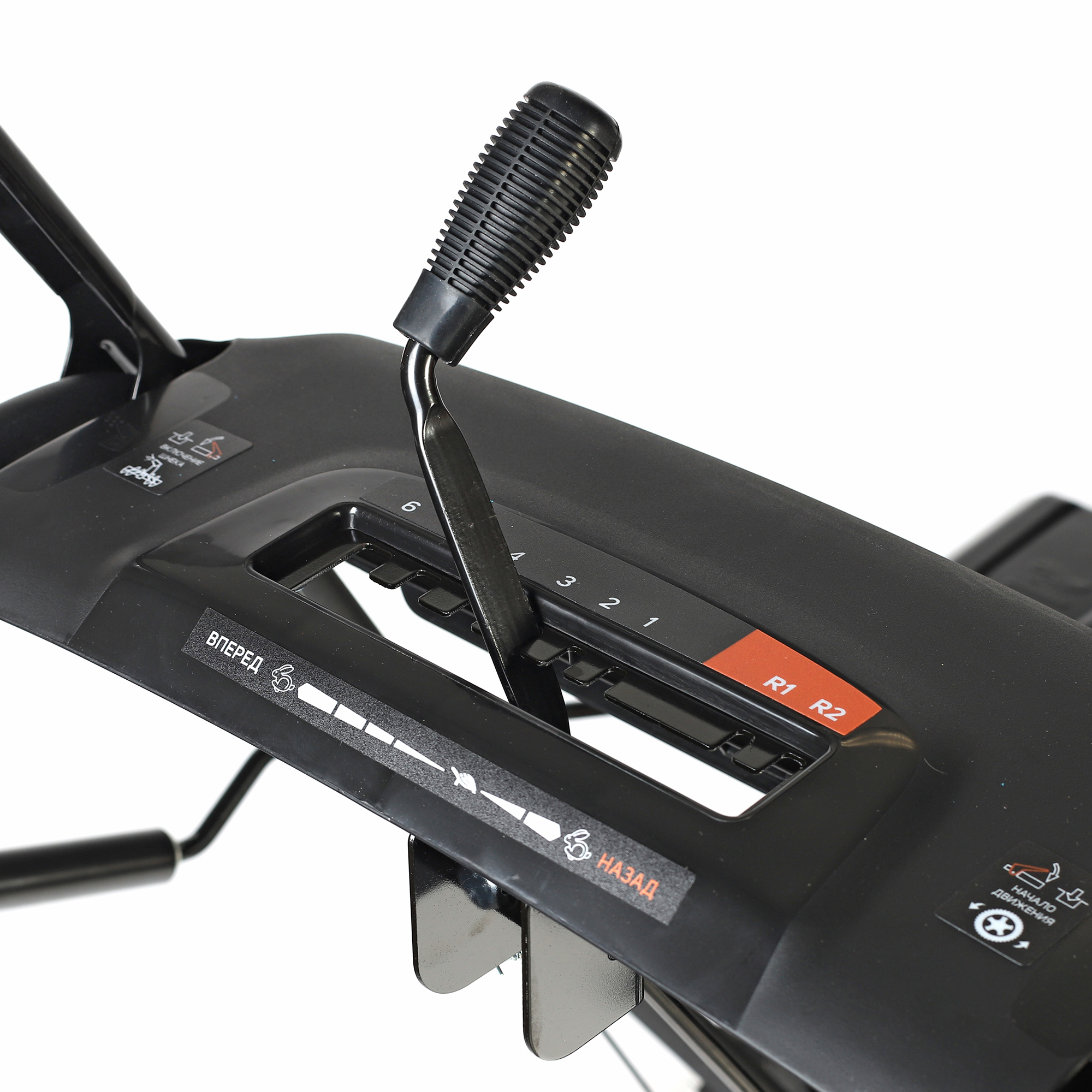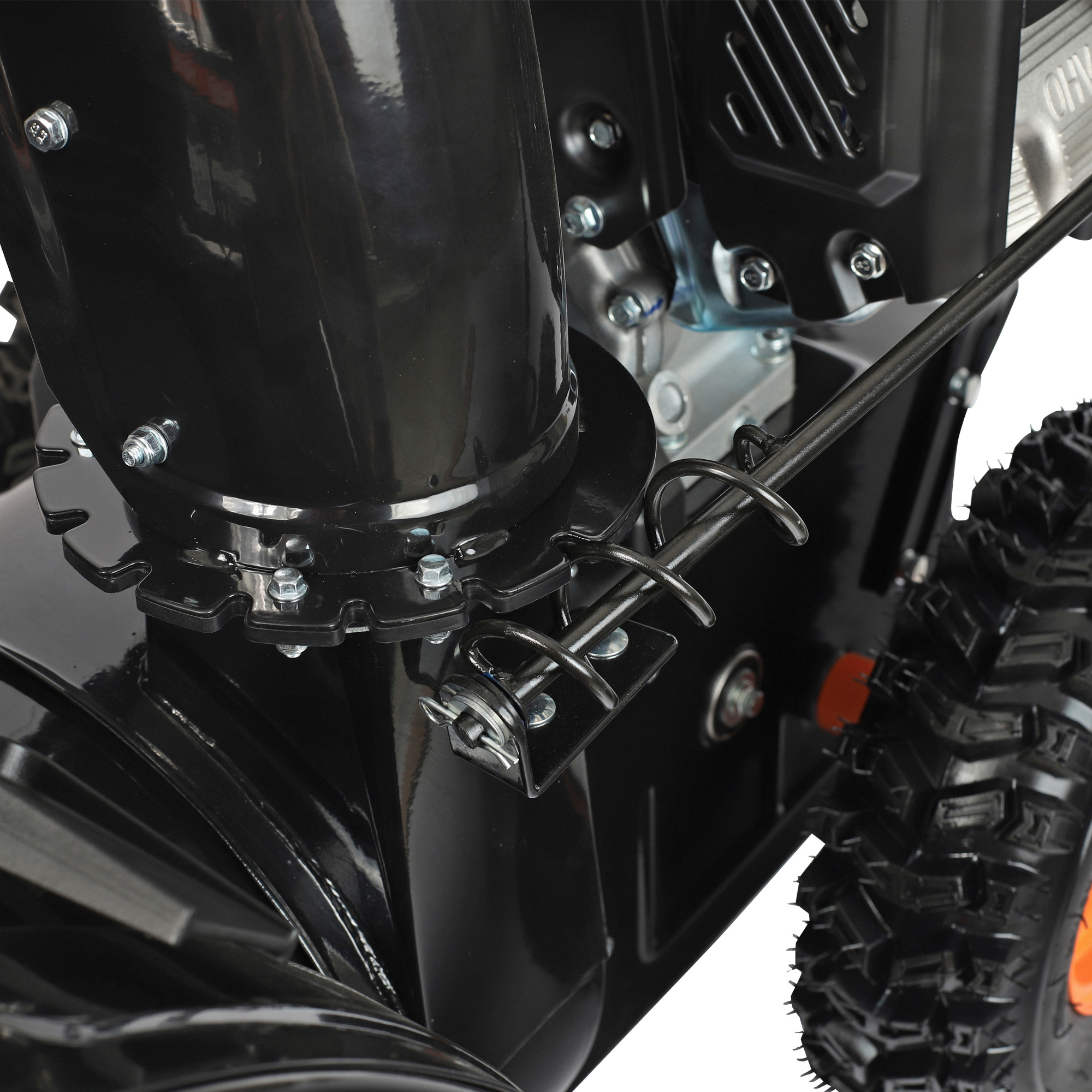 • Изменять направление выброса снега можно с панели на корпусе.