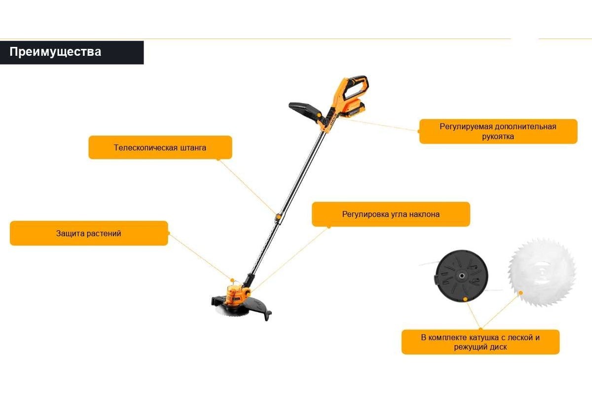 Легкий и маневренный инструмент для идеального порядка в саду. Работает без проводов и выхлопов. Преобразите участок без усилий!