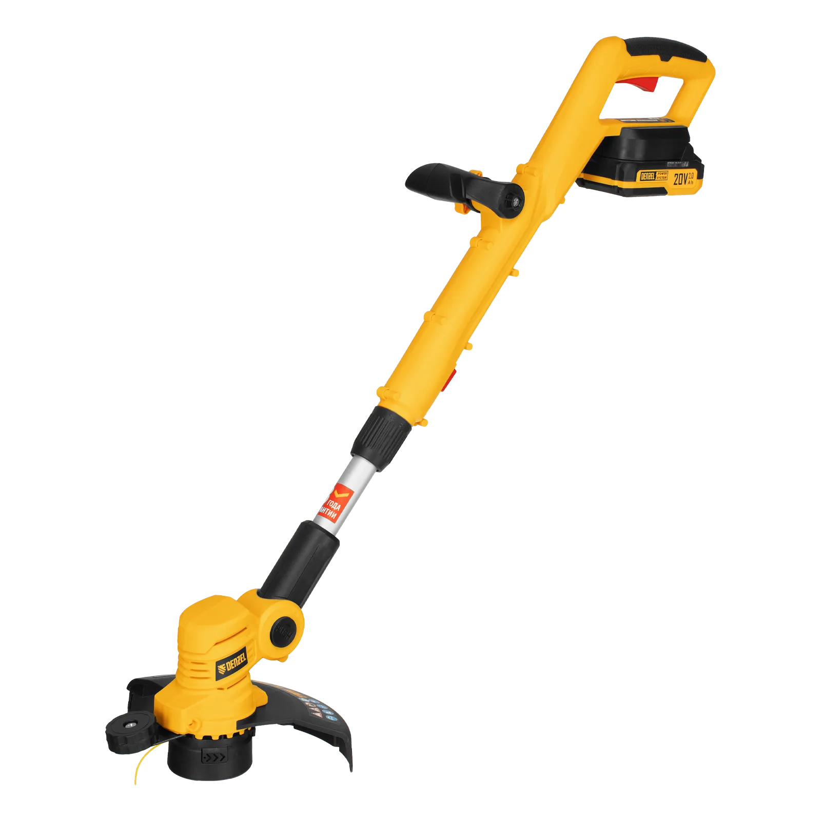 Модель оснащена полуавтоматической головкой с функцией быстрой подачи лески: просто легкий удар о землю — и корд подается сам. Угол наклона режущей головки также регулируется, подстраиваясь под любую задачу. Мощный двигатель обеспечивает стабильно высокие обороты для чистого и ровного среза. Аккумулятор является частью универсальной платформы Denzel Power System, а это значит, что одна батарея может работать с целым парком инструментов для сада.