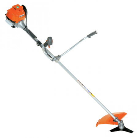 Конструкция этой мотокосы продумана для снижения усталости оператора. Велосипедная рукоятка и ранцевый ремень равномерно распределяют вес, а все элементы управления выведены на рукоятку для полного контроля над инструментом. Вам не придется готовить топливную смесь, что экономит время и упрощает эксплуатацию. Низкий уровень вибраций и шума делает работу более комфортной, а большой защитный кожух эффективно оберегает от летящей травы.