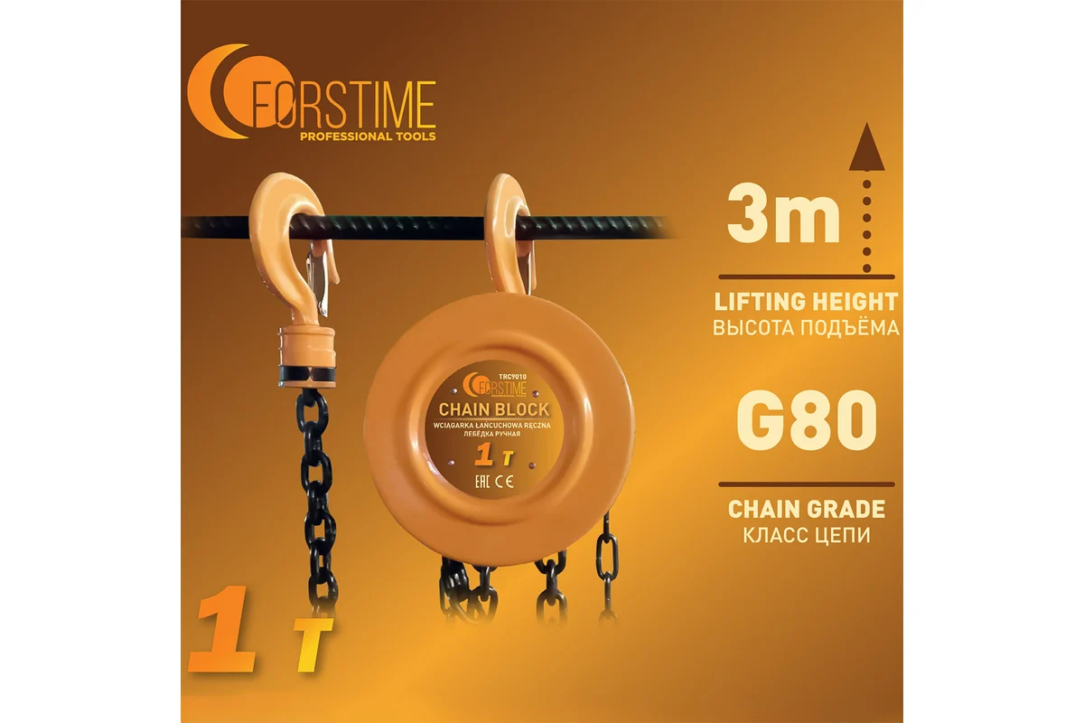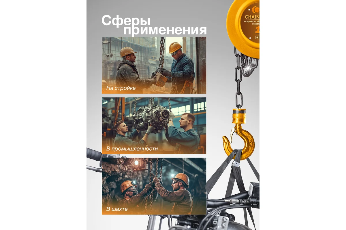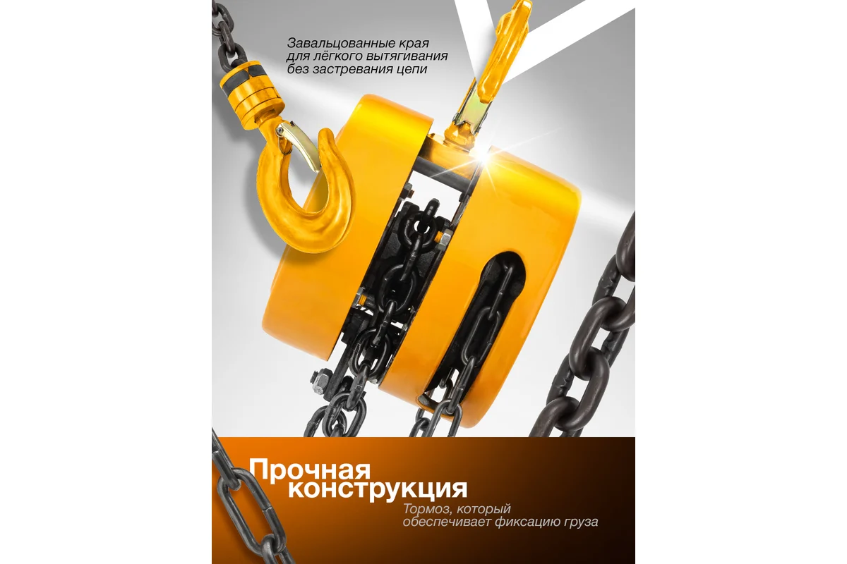 Высота подъема 3 м Длина цепи 3 м Ширина зева крюка 41 мм