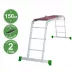 Лестница оснащена широкими рифлёными ступенями, которые обеспечивают надёжное сцепление обуви с поверхностью и снижают риск скольжения. Четырёхсекционная конструкция трансформируется в различные положения — от стремянки до рабочей платформы, что делает модель универсальной. Верхняя площадка позволяет удобно расположить инструменты или материалы, исключая необходимость в постоянном спуске. Алюминий, из которого изготовлена лестница, устойчив к коррозии и деформациям, поэтому её можно использовать и на улице, и в помещении.