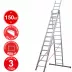 Высокая алюминиевая лестница с трёхсекционной конструкцией для бытового и профессионального использования. Прочная и устойчивая модель подходит для выполнения самых разных задач на значительной высоте.