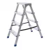 Двустороннее восхождение даёт возможность работать в паре или быстро менять сторону без перестановки лестницы. Широкие перекладины 80 мм обеспечивают уверенную опору и предотвращают скольжение, повышая безопасность. Прочная металлическая рама устойчива к деформациям, а алюминиевые элементы защищают от коррозии, что делает модель долговечной даже при регулярной эксплуатации на улице. Верхняя площадка позволяет разместить под рукой все необходимые материалы и инструменты.