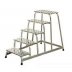 Изделие может устанавливаться под открытым небом без риска развития коррозии. Допускается одномоментное нахождение не более чем одного человека на подставке. Модель оснащена всего лишь двумя ступенями, а потому имеет небольшой вес и является предельно мобильным. Оно комплектуется резиновыми башмаками.