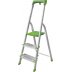 Ступени выполнены с рифлением, что исключает скольжение и обеспечивает уверенное положение при подъёме. Прочное основание сохраняет устойчивость даже при работе на неровных поверхностях, а алюминиевый каркас делает конструкцию лёгкой и мобильной. Небольшие габариты позволяют использовать стремянку в ограниченных пространствах и без труда переносить её между помещениями. Несмотря на компактность, модель рассчитана на нагрузку до 150 кг, что гарантирует её практичность и надёжность.