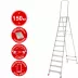 Новая Высота NV3136 — это двухсекционная модель с двусторонним восхождением и двенадцатью ступенями, оборудованная верхней площадкой. Общая высота составляет 3,59 м, что даёт возможность выполнять задачи на больших высотах. Алюминиевый корпус обеспечивает прочность и лёгкость конструкции, а устойчивость к коррозии гарантирует долговечность при эксплуатации как внутри помещений, так и на улице. Стремянка выдерживает нагрузку до 150 кг, что подтверждает её надёжность и безопасность.